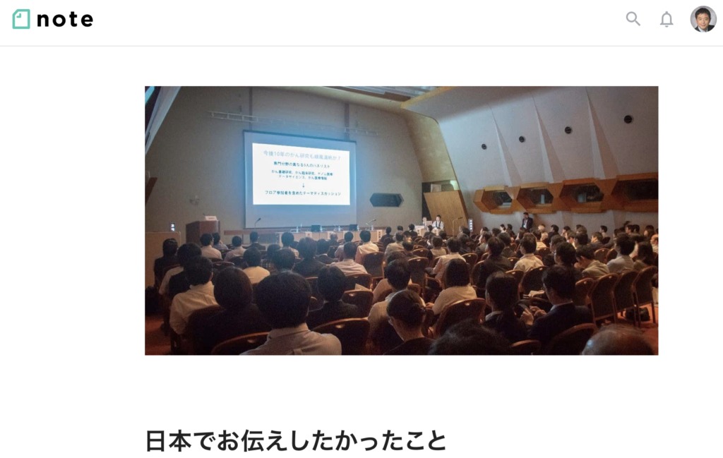 9月末に日本に1週間滞在してきました。その間に京都で開催された日本癌学会と、渋谷ヒカリエでのトークイベント「やさしい医療がひらく未来」に参加して発表してきました。そこで、お伝えしたかったことを、Noteの記事にまとめました。